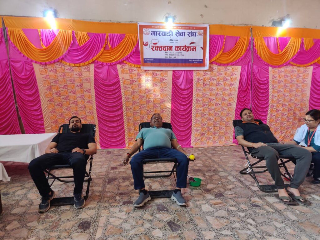 मारवाडी सेवा संघ, भैरहवा स्थित परीसरमा अवस्थित श्री हनुमान मन्दिर स्थापनाको २५ औं बार्षिक उत्सव(रजत जयन्ती)का अवसरमा आज शुक्रवार रक्तदान कार्यक्रम सम्पन्न भएको छ । संघको परीसरमा आयोजित रक्तदान कार्यक्रममा १०२ जनाले रक्तदान गरेको कार्यक्रमका संयोजक अजय पारखले बताए । नेपाल रेडक्रस सोसाइटी रक्त सञ्चार केन्द्र भैरहवाको प्राविधिक सहयोगमा रक्तदान कार्यक्रम आयोजना भएको थियो । रक्तदान कार्यक्रमका सहभागिहरुलाई लुम्बिनी प्रदेशका गृहमन्त्री सन्तोष पाण्डे, सिद्धार्थनगर नगर पालिकाका नगर प्रमुख इस्तियाक अहमद खान, मारवाडी सेवा संघका अध्यक्ष श्रवण बेरीवाल, निबर्तमान अध्यक्ष हेमन्त अग्रवाल लगायतले प्रमाणपत्र प्रदान गरेका थिए ।