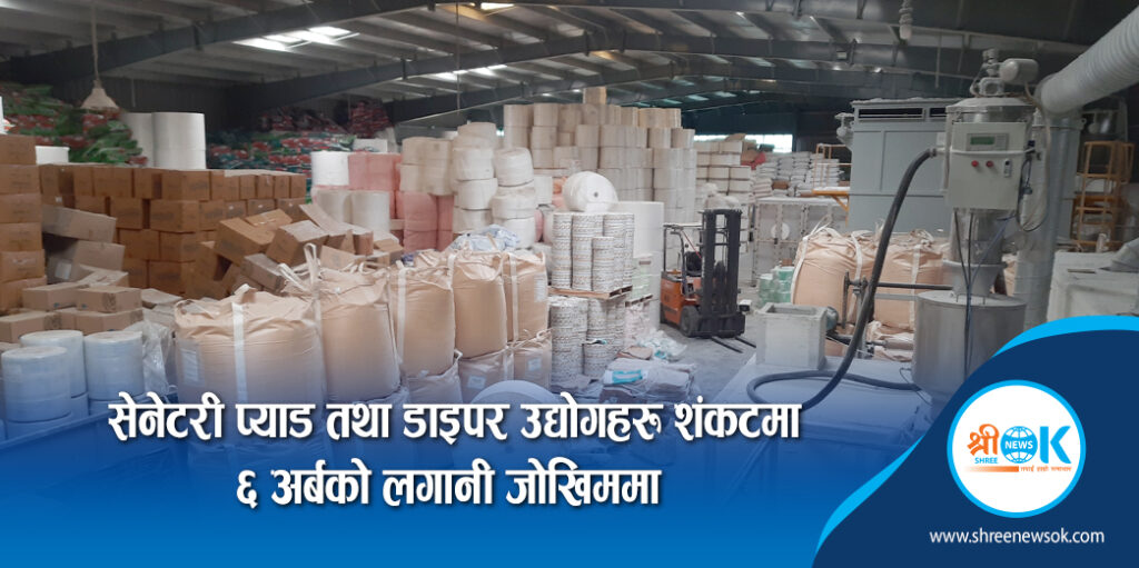 सरकारी गलत नीतिका कारण नेपालका सेनेटरी प्याड र डाइपर बनाउने उद्योगहरु शंकटग्रस्त अवस्थामा पुगेका छन् । सरकारले चालु आर्थिक वर्षको बजेटबाट लागु हुने गरी तयारी सेनेटरी प्याड र डाइपर तथा त्यो बनाउन प्रयोग हुने कच्चा पदार्थको भन्सार मूल्य एकै दर कायम हुँदा स्वदेशी उत्पादनले बिशेष गरी भारतीय उत्पादनसँग प्रतिष्पर्धा गर्न नसक्दा अहिले उद्योगहरु संकटमा पुगेको नेपाल सेनेटरी प्याड तथा वेवी डाइपर उत्पादन संघका अध्यक्ष डोलप्रसाद अधिकारीले बताए ।