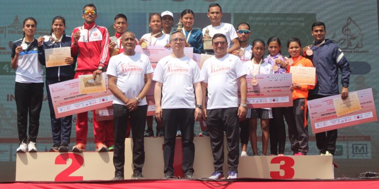 म्याराथन, हाफ म्याराथन तथा पाँच किमि दौडको सुरु तथा अन्त लुम्बिनी स्कवायरमा भएको थियो । विकास र शान्तिको लागि अन्तर्राष्ट्रिय खेलकुद दिवसको दिन अप्रिल ६( चैत्र २४ शनिवार)को अवसरमा नेपाल ओलम्पिक कमिटिको मुल आयोजना तथा नेपाल स्थित चिनियादुताबास, लुम्बिनी बिकास कोष, नेपाल पर्यटन बोर्ड तथा लुम्बिनी प्रदेश खेलकुद परीषदको सहकार्यमा प्रतियोगिता भएको हो ।